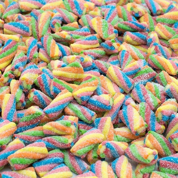 | Состав | сахар, сироп глюкозы, пшеничная мука, растительный жир (кокосовый); желирующий агент: желатин, пшеничный крахмал, вода, регулятор кислотности: лимонная кислота, яблочная кислота, малат натрия; эмульгатор: моно и диглицеридные жиры; ароматизаторы идентичные натуральным, красители: тартразин, красный очаровательный АС, синий блестящий FCF, диоксид титана |
